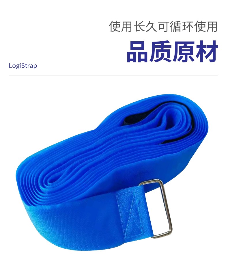 A:LogiStrap捆綁帶采用高彈聚酯纖維織帶制成。其極限拉伸強度為1.0–1.2 kN,建議工作拉力不超過0.35–0.45 kN,工作狀態(tài)下伸長率約為15–20%,并具備自適應(yīng)回彈能力,可在搬運或急停時持續(xù)提供夾持力。